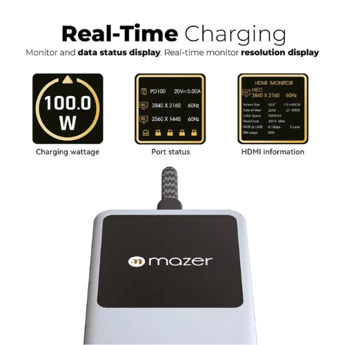 Smart AI Display with Real-Time Monitoring: Built-in intelligent screen shows live charging status and display resolution